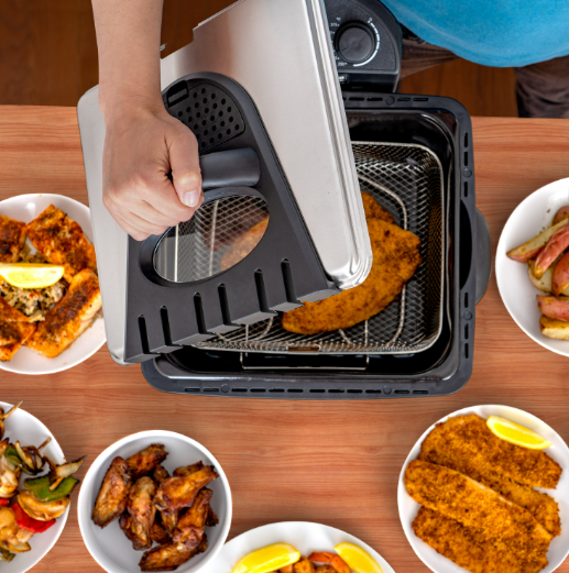 4 Quart Electric Deep Fryer - 1700 Watts Electrical Appliance with 3 Frying Baskets - Adjustable Temp Control, Insulated Handles, Stainless Steel Cover with Window, Enamel Inner Pot - 16x10x15.50" KTELFRY4