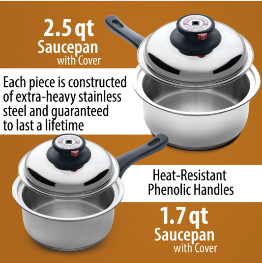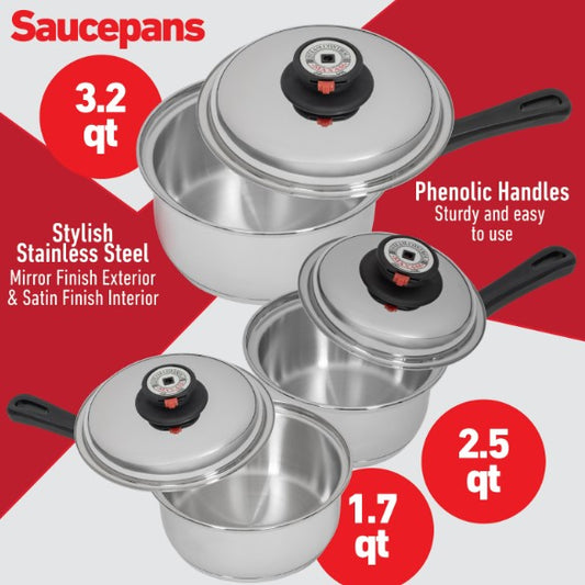 Chef's Secret 12-Ply Waterless Heavy Gauge Cookware Set, Durable Stainless Steel Construction with Thermo Control Top Knobs, 9-Pieces KT12