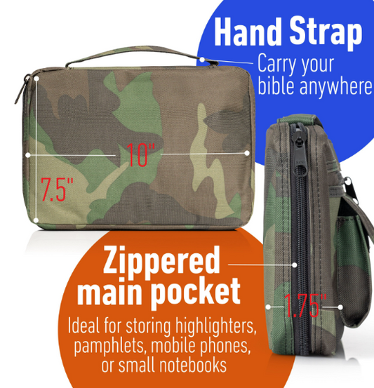 Embassy Bible Cover with Extra Zippered Compartments, to Protect the Good Book, Camouflage